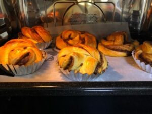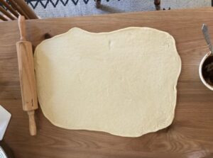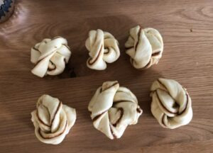 *모양은 카모메식당에 나온것처럼 하려면 반죽 전체 면적에 속재료를 바르고 돌돌만 후 김밥처럼 잘라서 (자른 모양이 사다리꼴이 되게) 가운데를 손가락으로 꾹 누르는 방법도 있다. 본인이 좋아하는 모양으로 하면 될 듯.