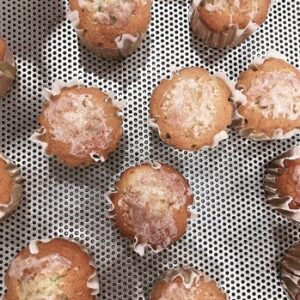 달걀을 크림 상태로 만들고 나서 재료를 섞는 단계에서 반죽의 비중이 높아지므로, 가볍게 섞어주는 것이 중요합니다. 밀가루가 들어가는 순간부터는 특히 주의하세요. 너무 많이 저으면 폭신한 식감이 줄어듭니다. - 완성된 컵케이크 모양