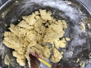 밀가루 체질하기: 쿠키 반죽 전에 박력분은 체질을 해 주는 것이 좋습니다. 하지만 덧가루로 사용할 강력분은 체질하지 않아도 됩니다.