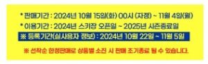 - 판매 기간: 2024년 10월 15일(화) 00시부터 11월 4일(월)까지