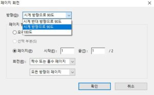 키보드에서 Ctrl + Shift + R을 누릅니다. 그러면 화면에 아래와같이 회전 옵션이 뜨게 됩니다. 이 옵션을 통해 파일을 가로 방향으로 회전할 수 있습니다.