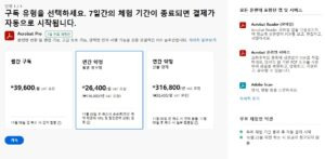 Adobe Acrobat 홈페이지 이용 플랜 참고