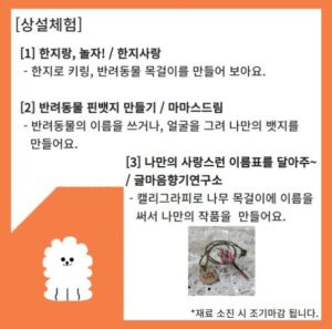 같이행복하개의 체험 행사는 사전접수와 현장 신청이 있는데요, 사전에 예약해야 참석 가능한 것도 있으니 되도록 미리미리 신청하는게 좋을것 같아요.