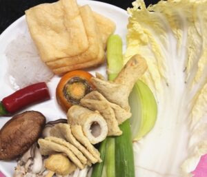 유부주머니는 전골의 핵심 재료로, 부드러운 유부에 채소와 고기, 당면 등 다양한 재료를 넣어 씹는 맛이 풍부합니다.