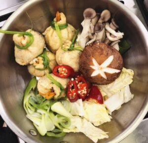 준비한 유부주머니와 다양한 재료들을 전골냄비에 넣고 육수를 부어 끓여내면 완성입니다.