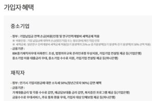 - 복지 서비스와 세제 혜택: 건강검진비, 휴가비, 교육 바우처 등 중소기업 근로자의 복지를 위한 혜택이 제공되며, 소득세 및 법인세 절감 효과도 누릴 수 있습니다.