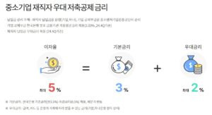 중소기업 재직자라면! 반가운 소식입니다. 이번에 출시된 ‘중소기업 재직자 우대 저축공제’는 정부와 기업이 중소기업 근로자의 자산 형성을 돕기 위해 협력한 고금리 정책금융상품으로, 중소기업에 근무하는 근로자가 장기 재직하며 자산을 안정적으로 쌓을 수 있도록 지원하고, 특히 최대 5%의 우대 금리를 제공해 높은 수익률을 기대할 수 있는 것이 큰 장점입니다. 장기 근무에 따른 기업의 인력 안정화에도 기여할 수 있는 중요한 제도로 자리매김할 것으로 보입니다. 이번 글에서는 상품의 주요 내용과 가입 혜택, 가입 조건, 중도 퇴사 시 환수 규정 등 상품의 모든 혜택을 자세히 설명해드리겠습니다.