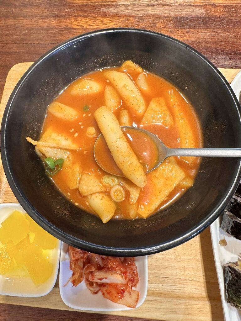 떡볶이 국물에 김밥 푹 찍먹! 장국을 안먹었는데도 떡볶이 국물 만으로 속이 뜨끈하고 든든해졌어요.