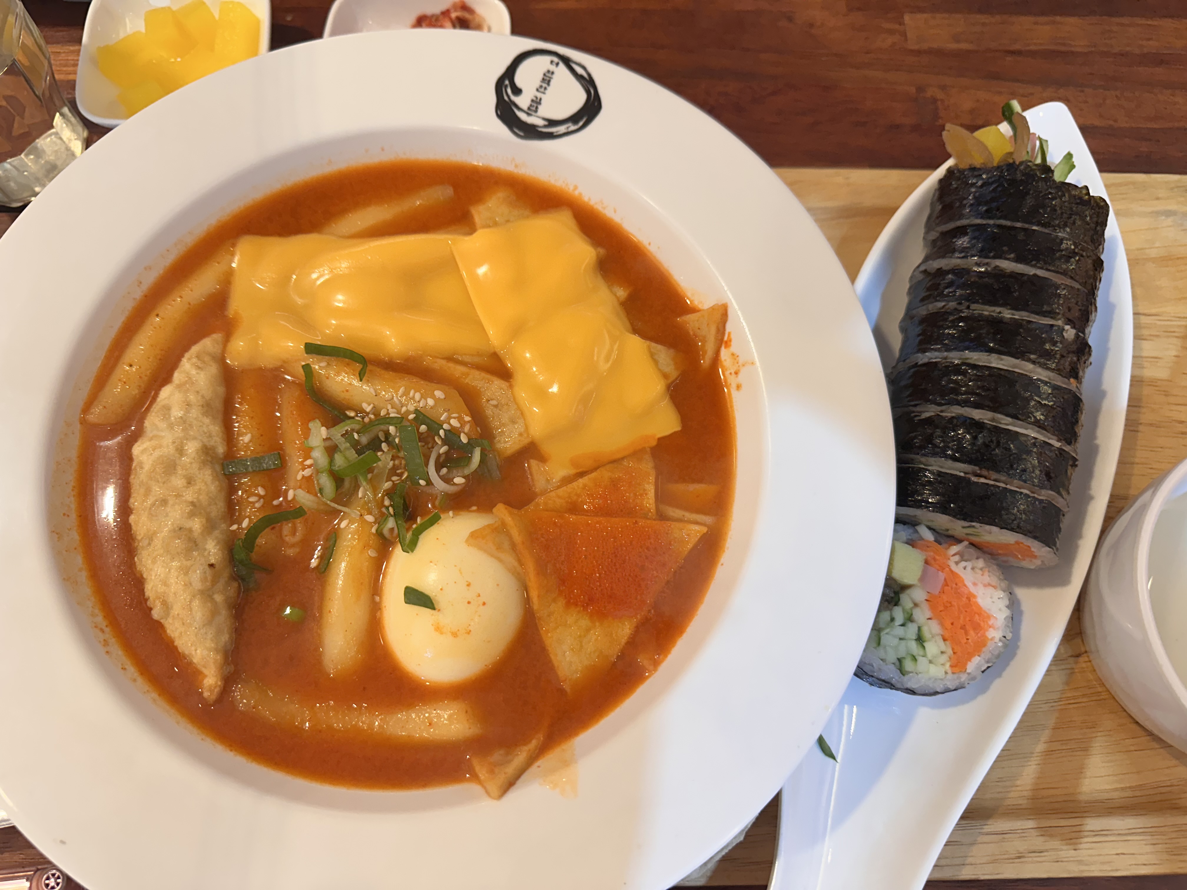 떡볶이는 밀떡! 국물떡볶이로, 자작한데요, 살짝 달큰하고 뜨끈한 국물이 떠먹기에도, 김밥을 찍어먹기에도 딱 좋았습니다. 이 맛 아시나요? 떡을 물에 삶았을 때의 말랑하고 쫀득한 느낌. 어묵도 넉넉히 들어있었습니다. 저는 매운걸 좋아해서 다음에는 매운떡볶이를 먹어봐야겠다 생각했어요.