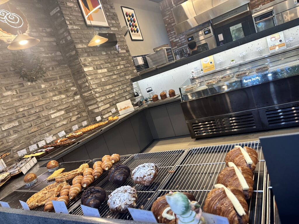 실내 모습. 솔직히 가게 외관이나 실내가 엄청 예쁘진 않아요. 자리가 넓고 역 앞 대로변에 있어서 찾아가기 쉬운 것이 장점이랄까요..? 좀 오래된 느낌이 들지만 인테리어보다는, 빵 맛과 퀄리티가 장점인 곳 입니다. 테이블이 크고 넓은 편이라 노트북으로 작업하는 분들도 종종 보였습니다.
