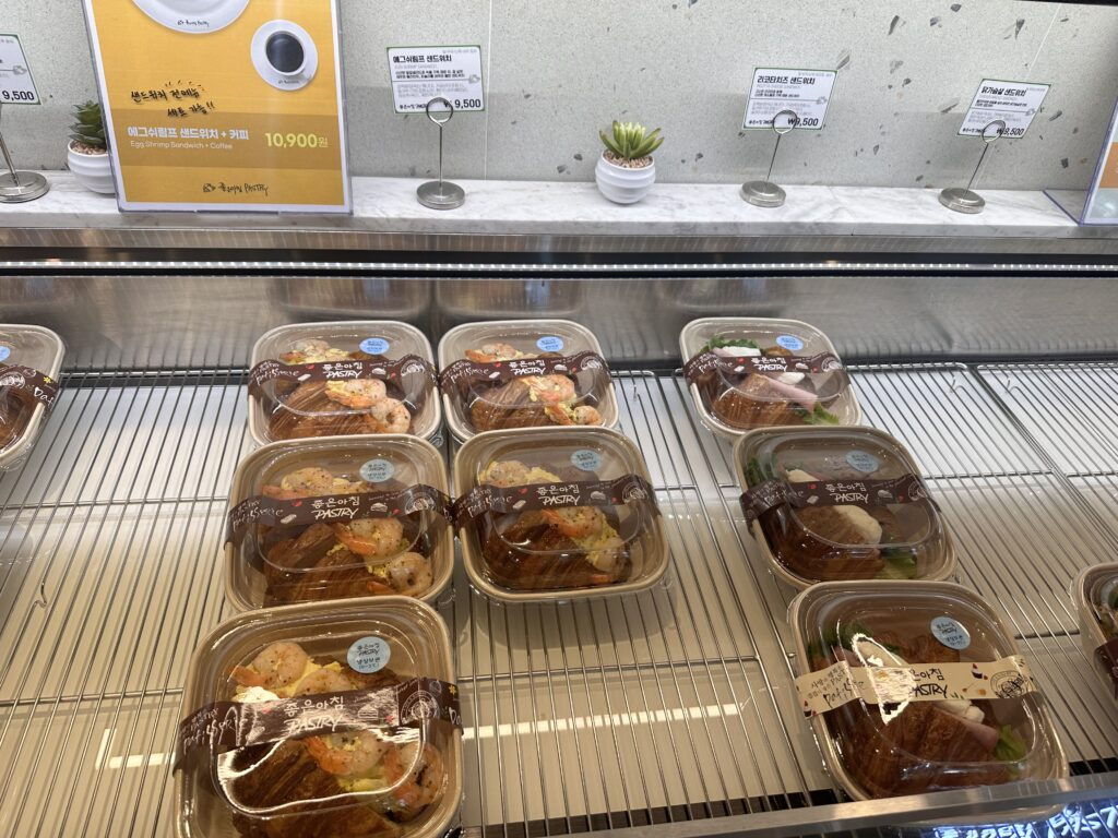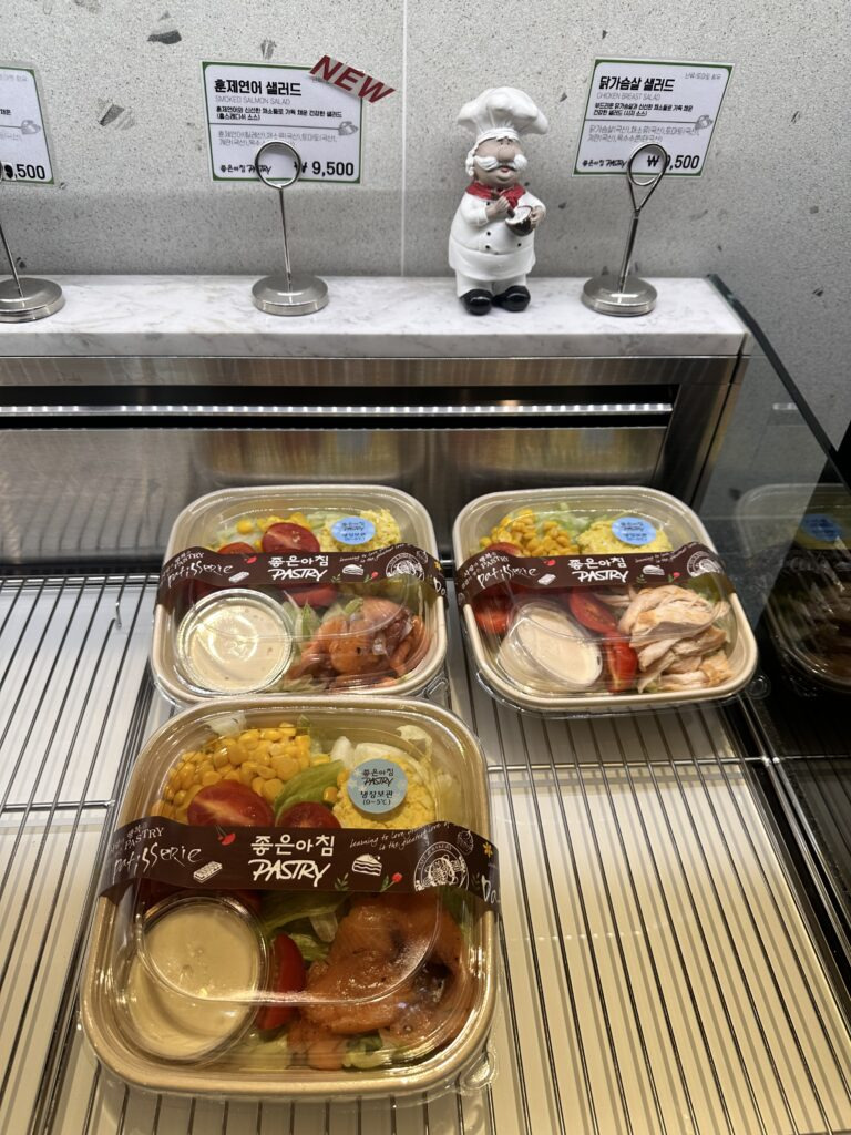 식사 대용으로 먹을만 한 크로아상 샌드위치와 샐러드도 있어요.