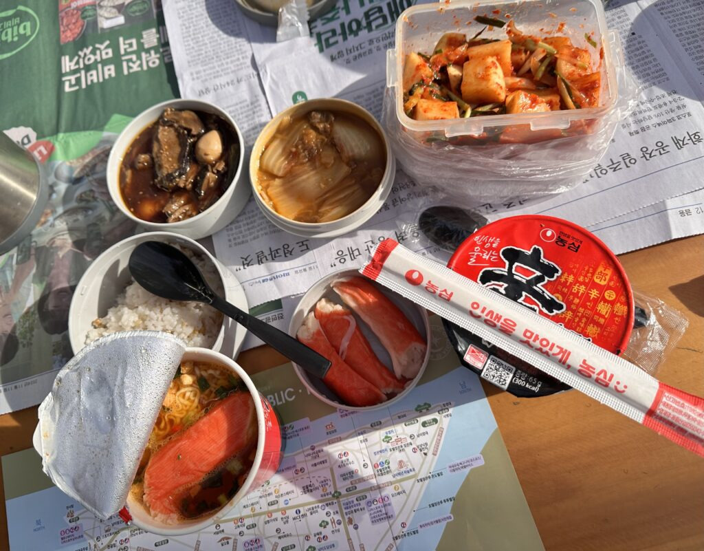 김밥을 쌀까 하다가 기온이 낮은편이라 금방 굳을것 같아서 보온도시락에 간단히 집밥을 싸가지고 갔답니다.