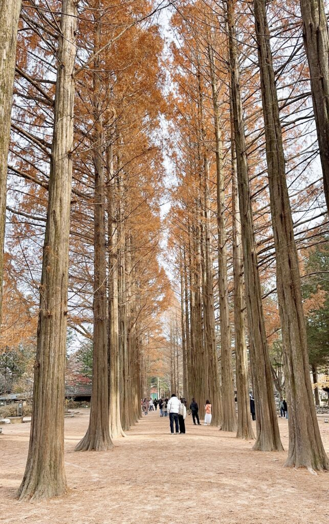 남이섬의 하이라이트라고 생각하는 메타세콰이어길입니다. 가을에도 쭉 뻗는 큰 나무가 아름답네요.
