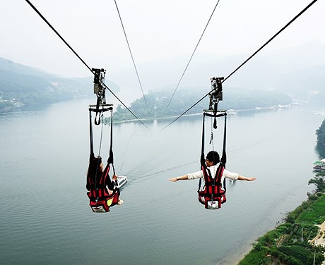 짐이 없고 강아지를 동반하지 않았다면 짚라인을 타고 남이섬으로 들어가보는 것도 좋을것 같다 생각어요. 짚라인은 매표소 근처에 있고, 가격은 아래와 같습니다.