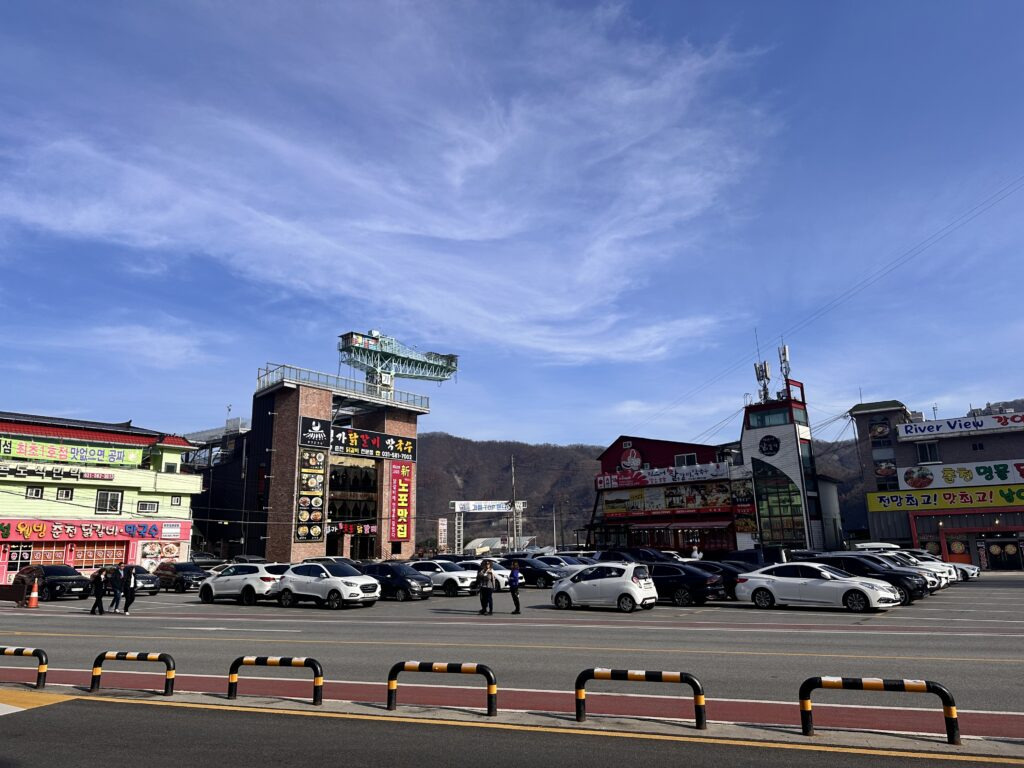 남이섬 초입에는 닭갈비 등의 식당이 아주 많습니다. 대부분의 식당에서 유료 주차장도 겸하고 있고, 해당 식당에서 식사를 하면 주차비는 받지 않고 있었습니다. 저희도 어떤 식당 앞에 주차해서 종일 주차비 4000원. 식당에서 밥을 먹지 않았기 때문에 주차비만 지불했습니다. 반갑게도 강아지 동반 가능한 식당도 상당히 많았어요. 주차를 하고 나면 남이섬은 말 그대로 '섬'이니 배를 타고 들어가야 해서 선착장으로 걸어서 이동해야 합니다.