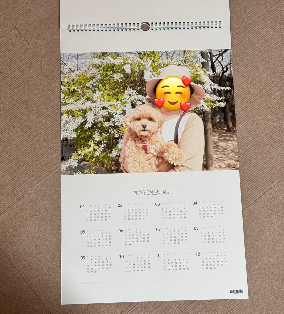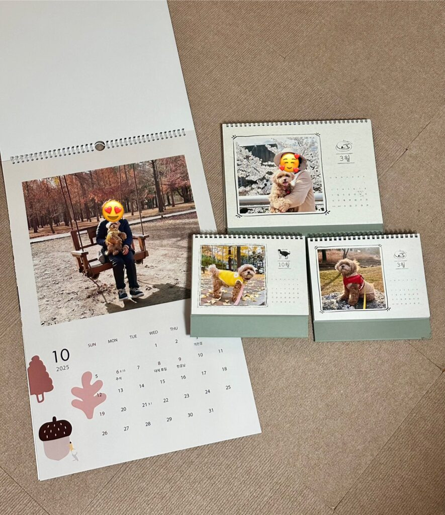 특히 반려동물이나 아기를 키우시는 분들은 우선 달력으로 활용하고 해가 지나면 사진만 잘라 모아, 사진 앨범을 만들거나 일부는 액자로 만드는 방법도 참 좋을 것 같습니다. 저희집도 잘 나온 사진은 해가 지나면 액자로 만들기로 했답니다 액자로 만들게되면 또 후기를 공유할게요!