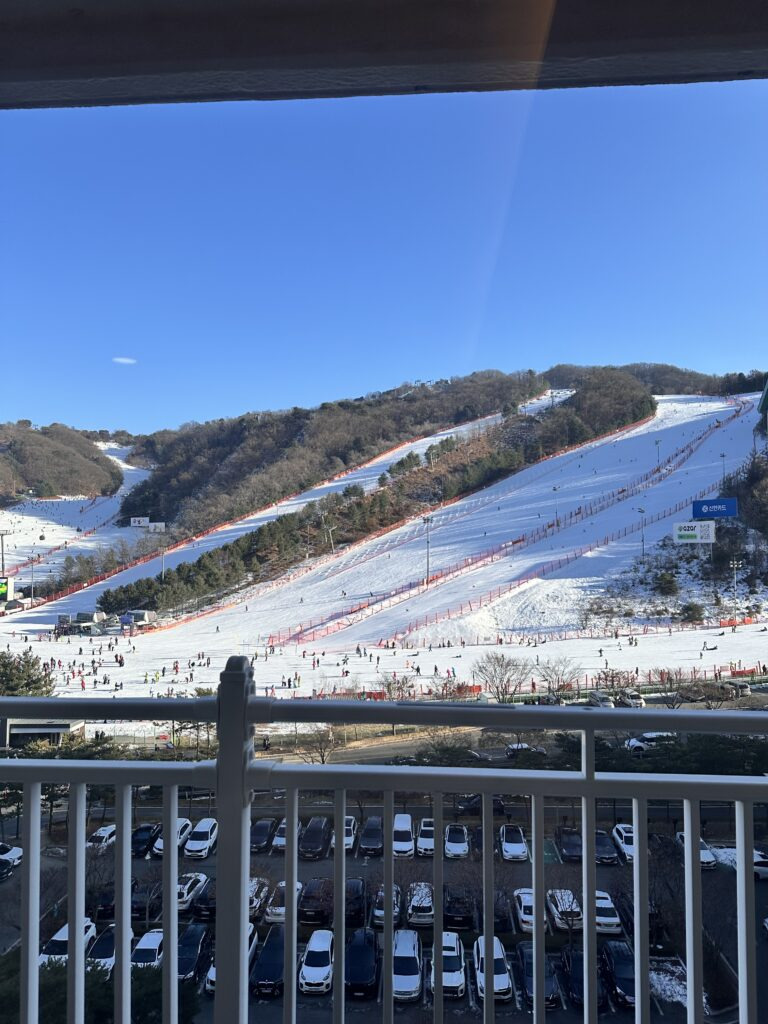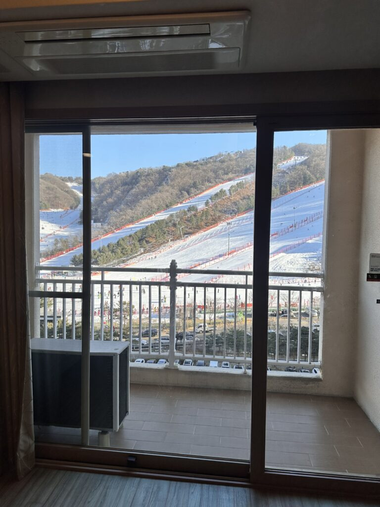 높은 층은 아니지만 슬로프 뷰여서 테크노와 힙합 슬로프가 잘 보였답니다. 누가누가 잘 타나 다 보인다~!!