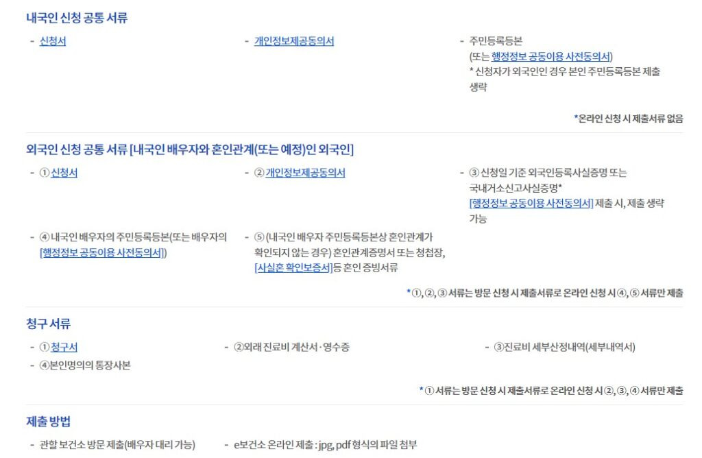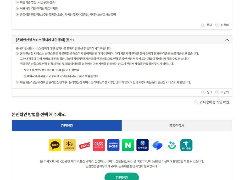 제출서류가 복잡해보이지만, e보건소 홈페이지에서 개인정보동의 및 본인인증 후 신청하면 별도의 서류제출 없이 편리합니다!