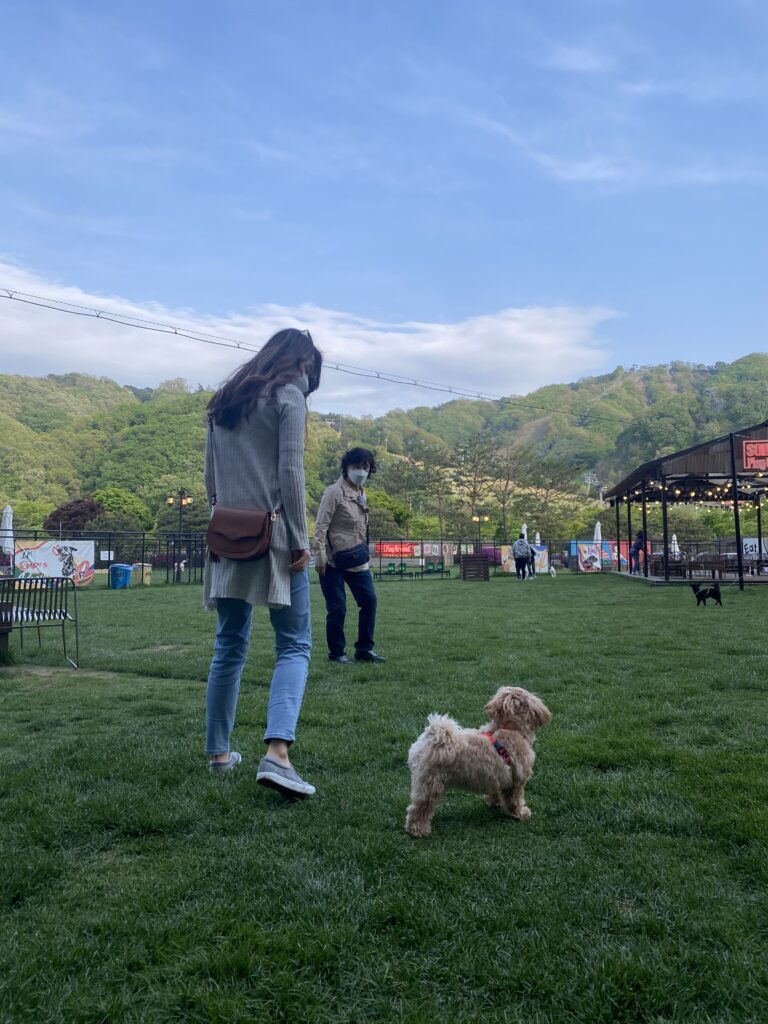 이렇게 체크인 후 운동장에 강아지와 산책을 나가기로했어요.