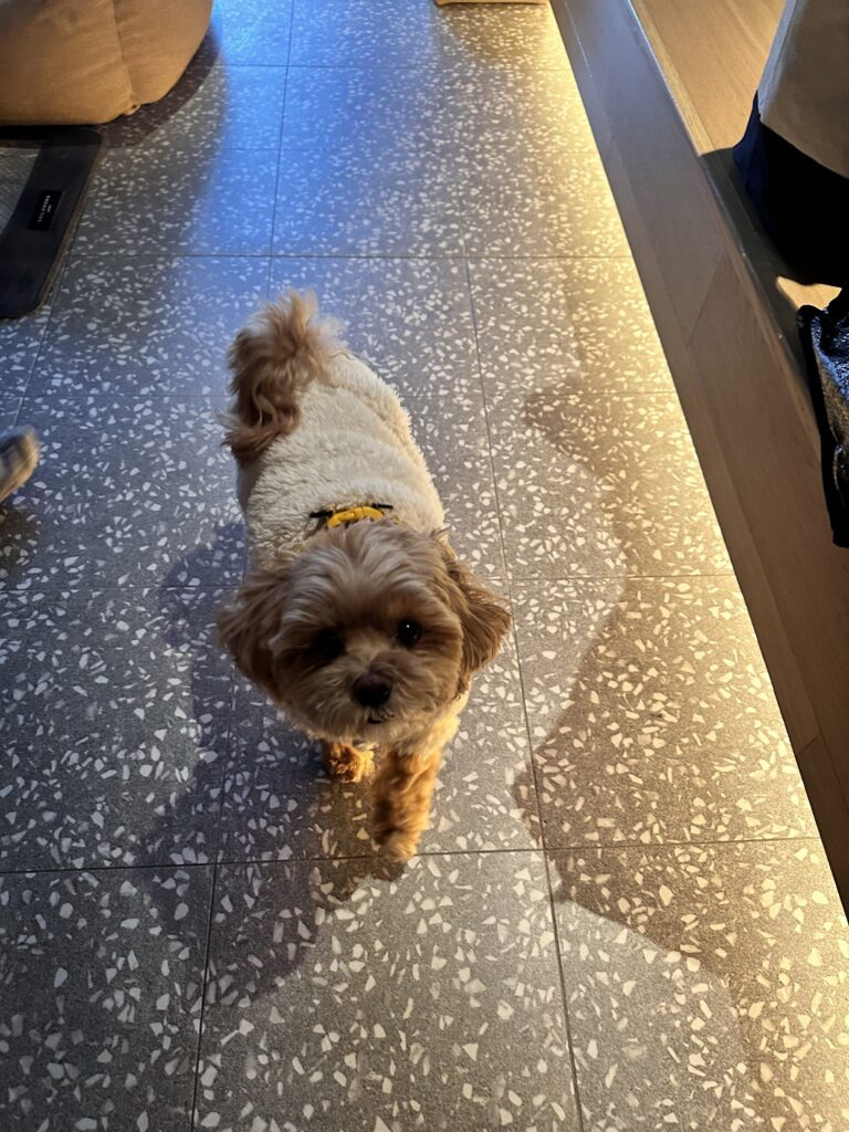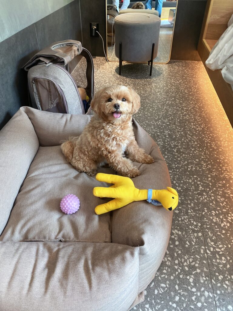 저희 강아지 아주 신났네요. 바닥은 강아지를 배려한듯 덜 미끄러운 타일스타일. 참고로 소노펫은 복도 조명도 어둡고 방도 어두운 편인데요, 강아지의 눈에 편한 조도와 환경을 만들어주기 위해 일부러 처음 설계부터 계획된 것이라고 해요. (어둡다고 불평말기! ㅋㅋ) 또한, 중문이 설치되어있어서 왠만한 소음은 차단 되었습니다!