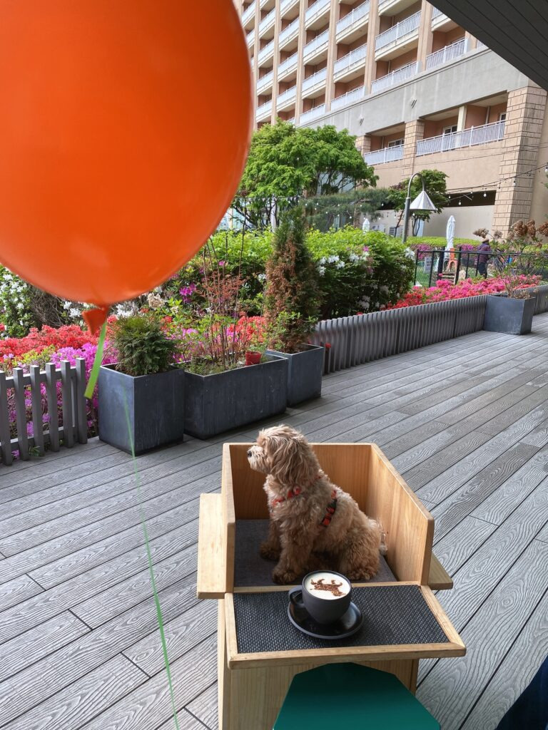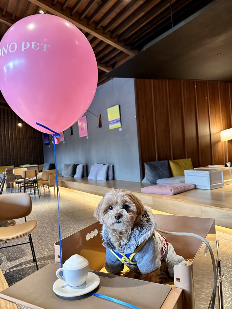 2022년 5월에 왔을때 띵킹독에서 멍푸치노. 멍푸치노를 주문하면 풍선을 같이 줘요. 지금도 똑같습니다. 멍푸치노는 전에는 강아지 그림이 그려져있었는데, 지금은 크림을 얹어주네요.