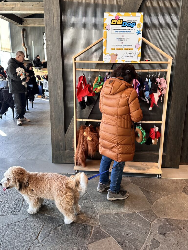 이렇게 강아지 입히고 사진을 찍을 수 있는 옷들도 있고요, 포토 부스도 있었답니다.