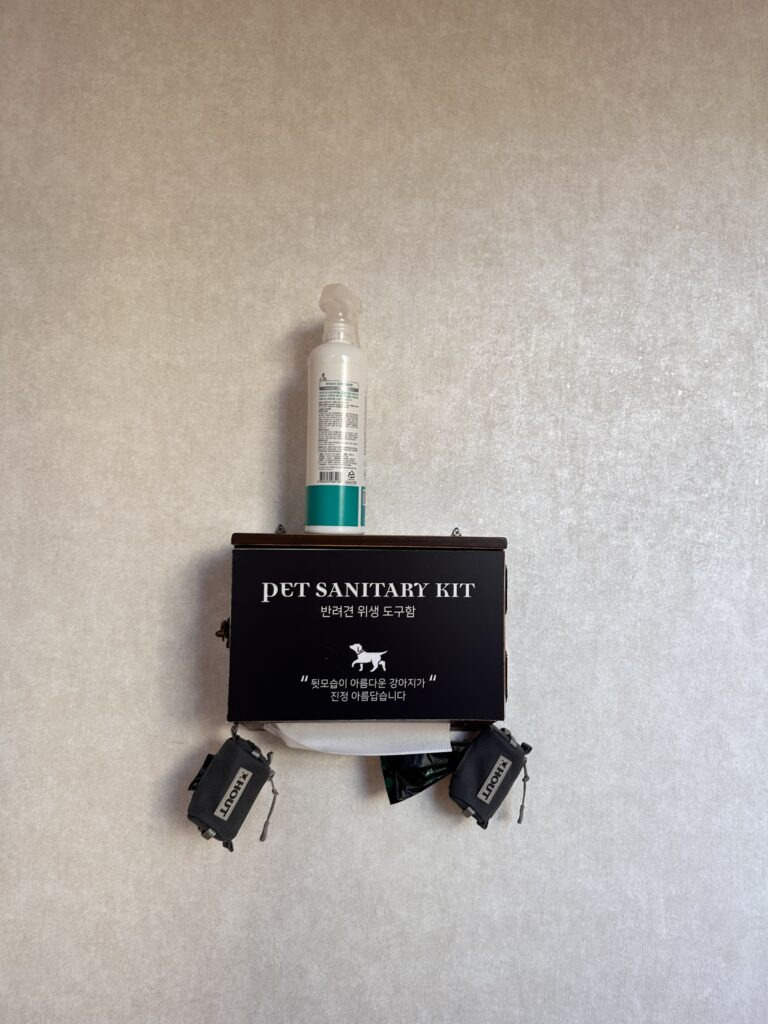 산책하러 나가는 길 곳곳에 배변봉투와 휴지통, 강아지 리드줄을 잠시 걸쳐놓을 수 있는 시설이 준비되어있어서 편리했어요.