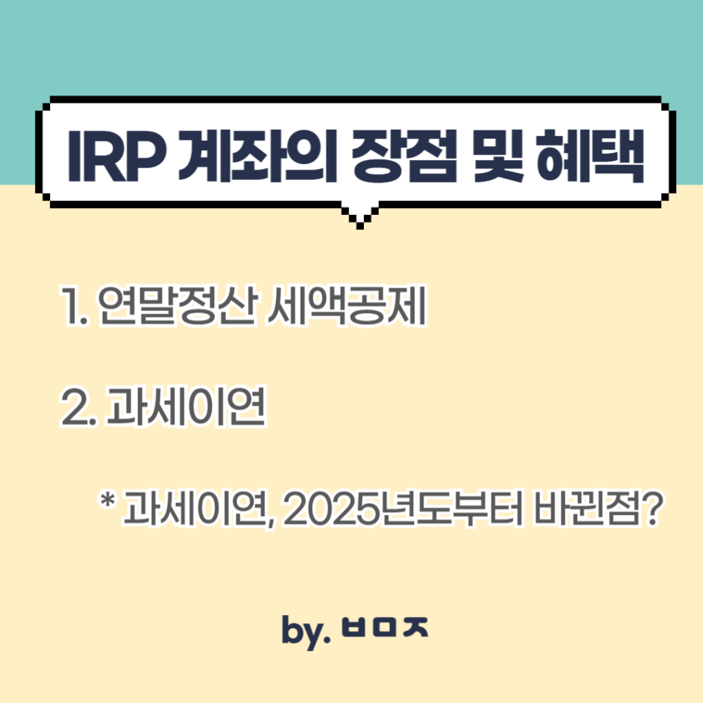 IRP 계좌의 가장 큰 매력은 세제혜택입니다만, 두가지 핵심 혜택은 아래와 같습니다.
