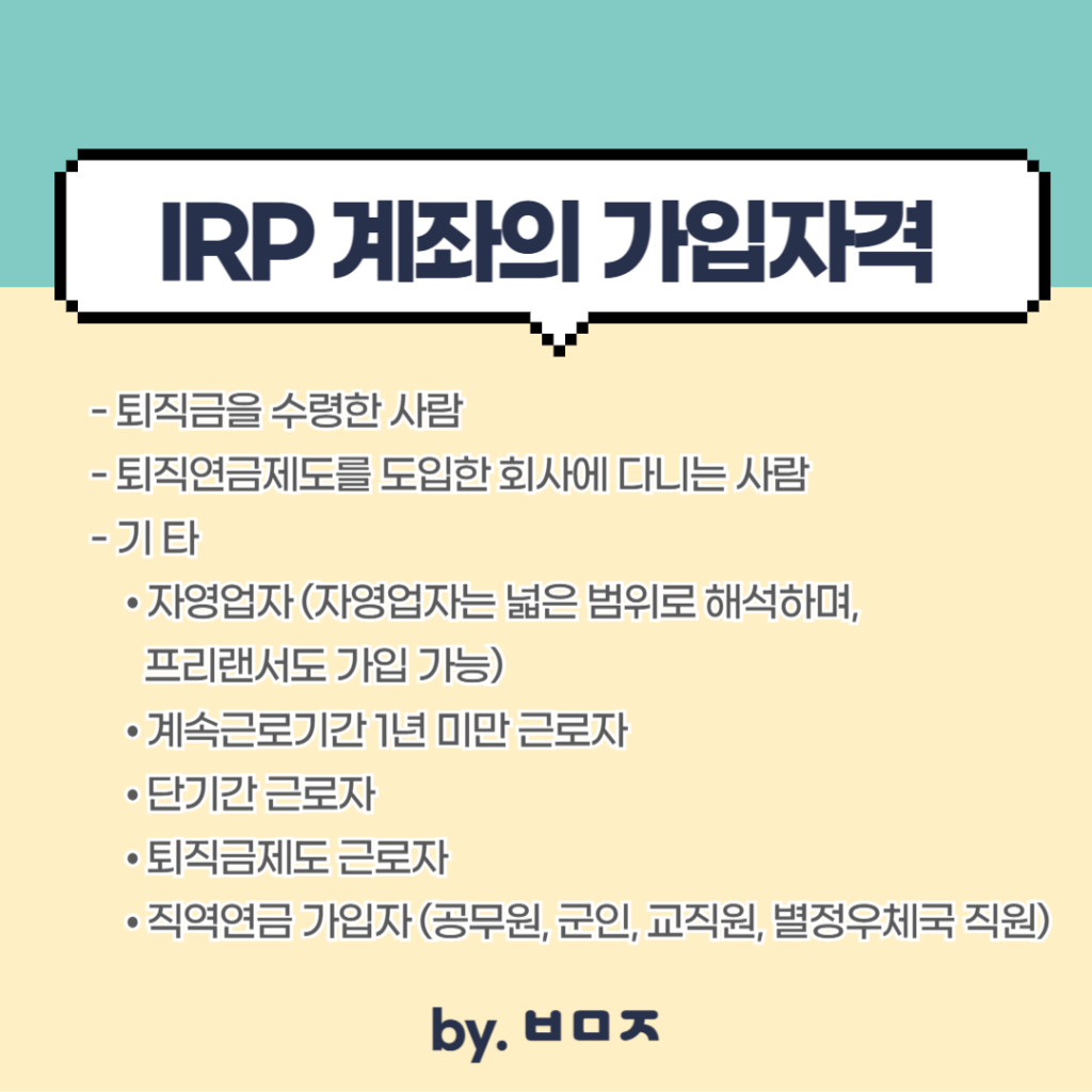 돈을 버는 대부분의 근로자 분들이 IRP 가입이 가능합니다.