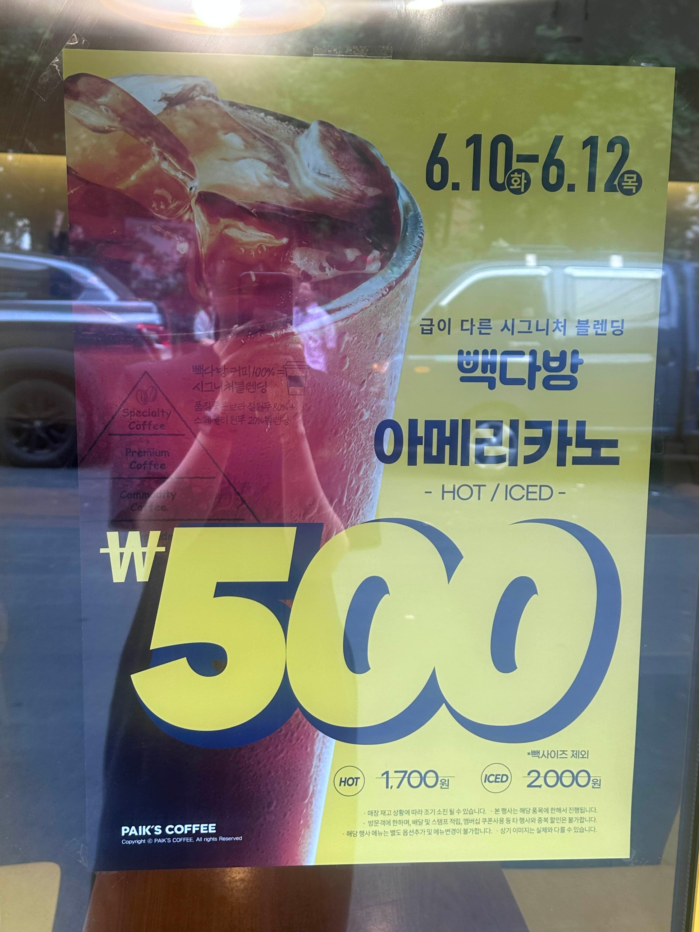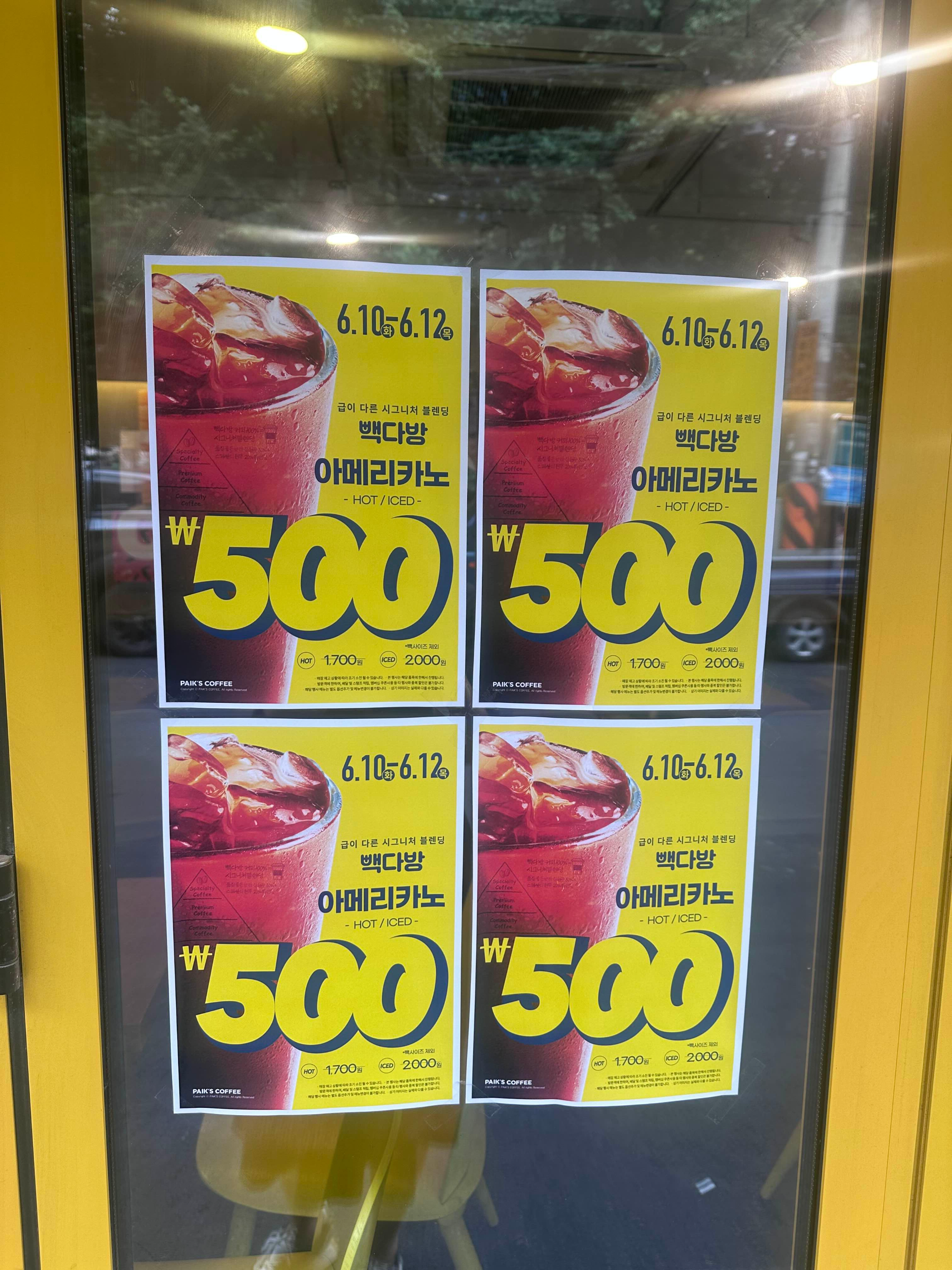 회사 근처 점심먹고 빽다방 할인행사 한다고 해서 가봤다.