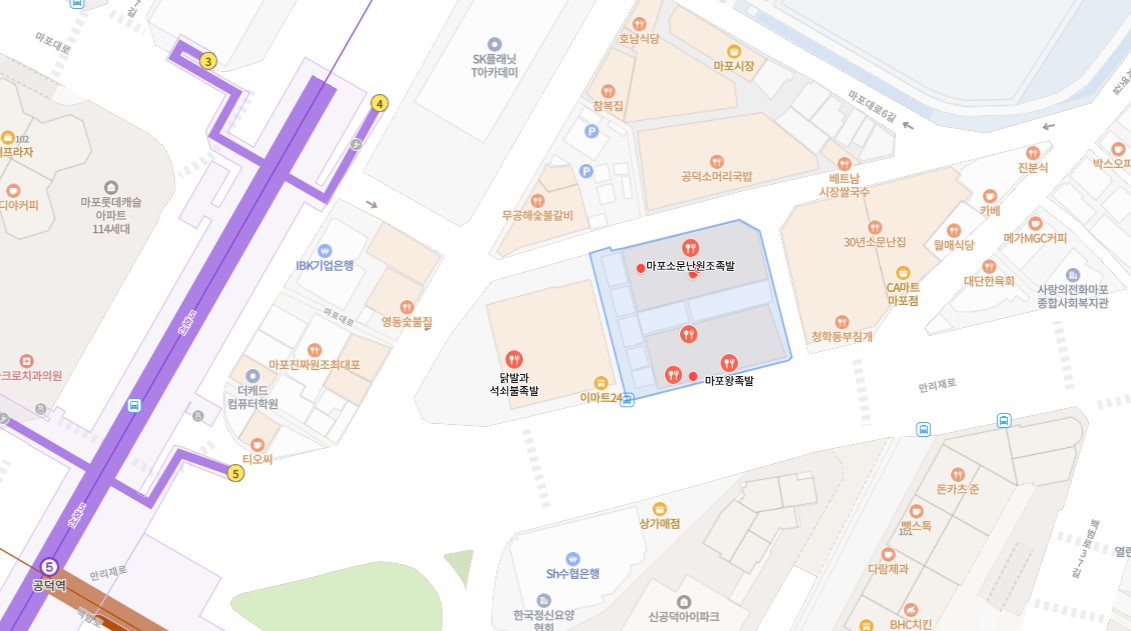 위 지도처럼, 족발집들이 모여있는 곳이 있다.